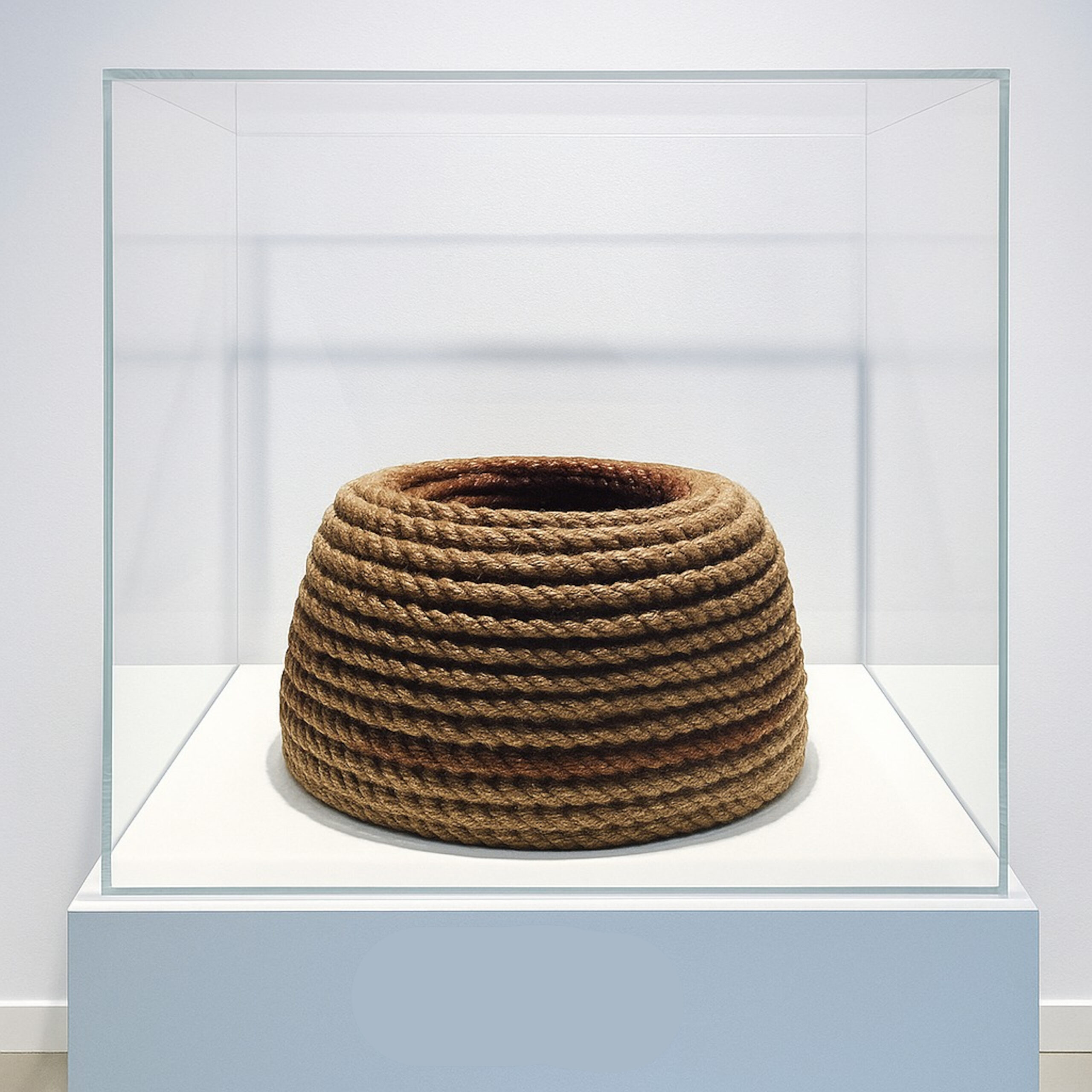 Jute rope, iron oxide · Glass vitrine · 2023